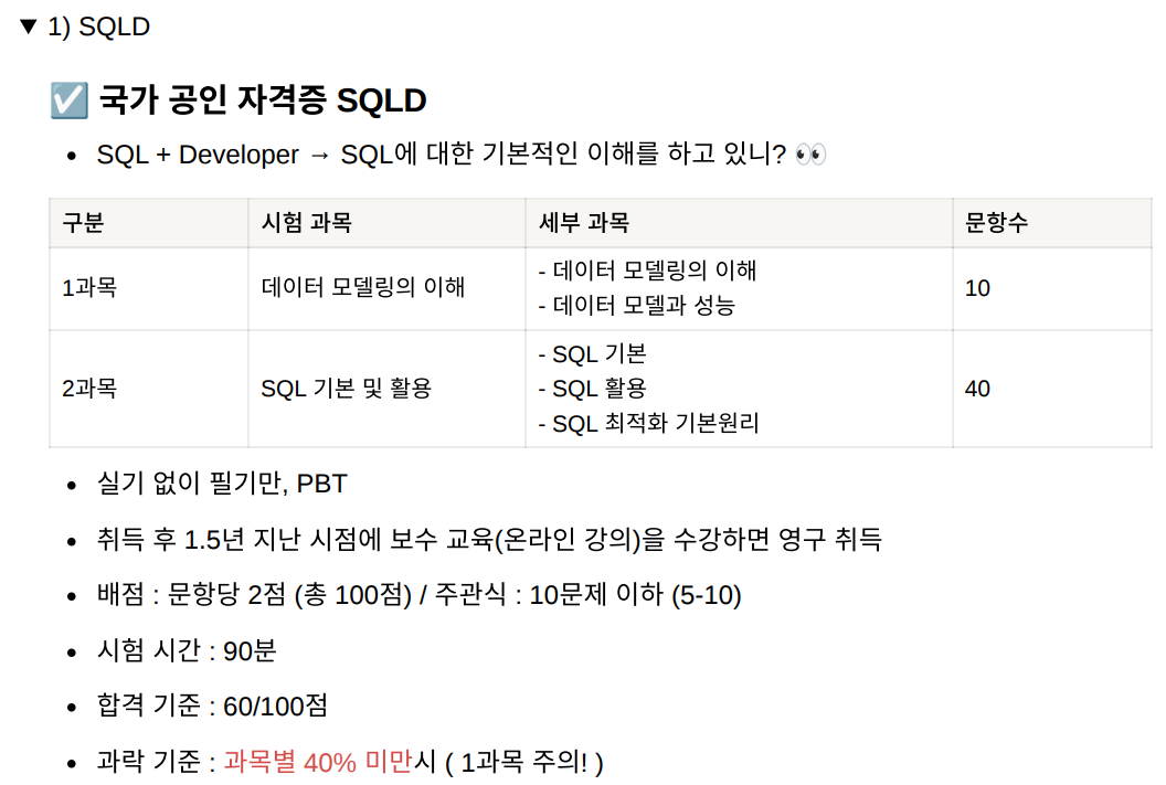 그래서 개인적으로 SQLD와 ADsP도 동시에 취득했으면 좋겠다.