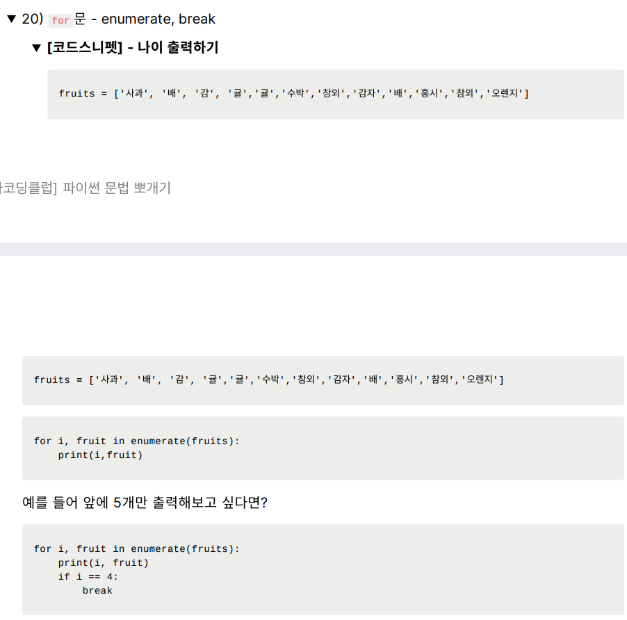 - for 문 - enumerate, break