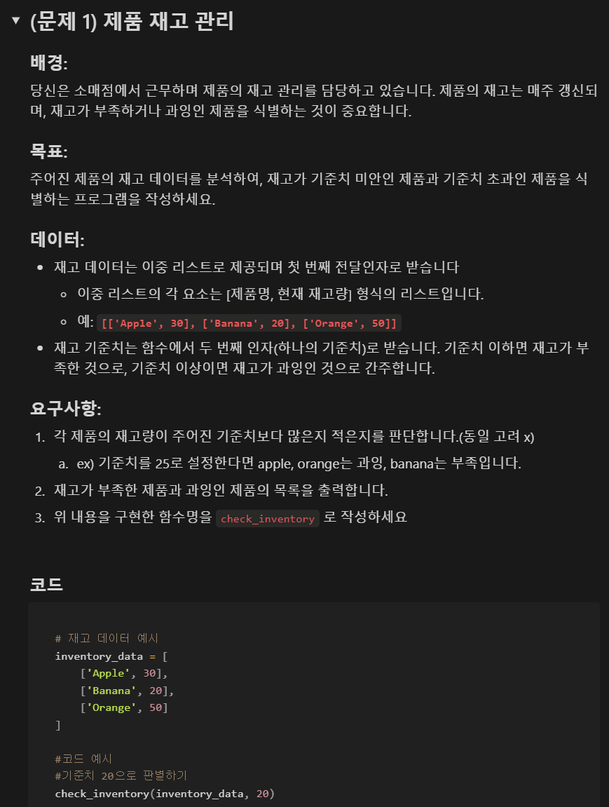 : return 함수에 name 값을 출력하게 만드는 방법을 튜터님의 도움으로 수정함. inventory_data 예시 코드도 내가 변형함.